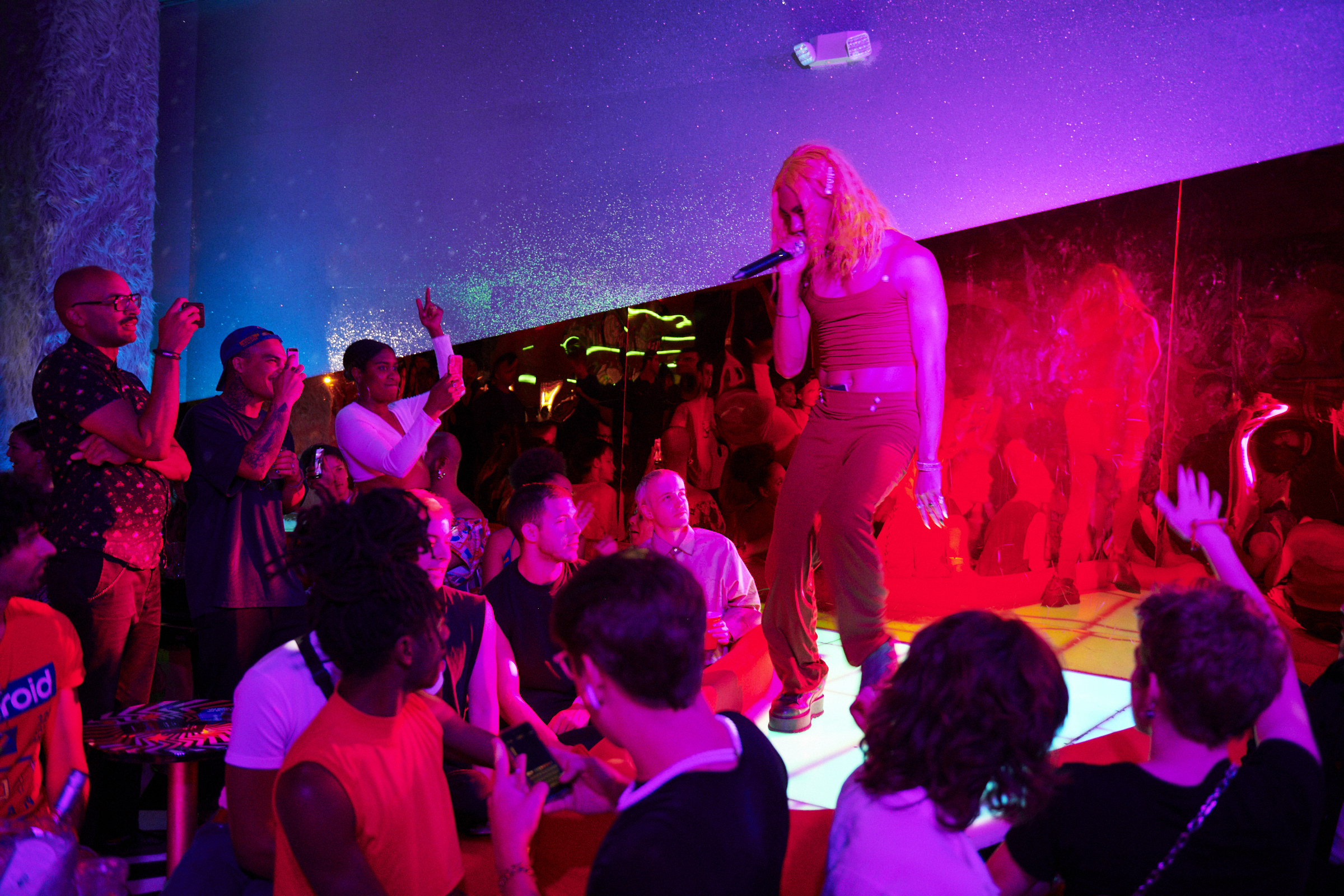 Saturn (@saturnrisin9) absolutely killed their performance at WOW in Los Angeles, a nightlife event co-sponsored by TRASH and hosted by the likes of Kevin McGarry (@kevinmcgarry), MEZ (@spacecowboymez), Daniel Osahon (@daniel.osahon) and Mandy Harris Williams (@idealblackfemale). Fellow TRASH Angel Niko Karamyan (@nikotheikon) was also in attendance as Saturn stormed the two-story stage, descended down a stripper pole fit for a fire station and performed original songs including “Orange” and “Diss Bitch.”